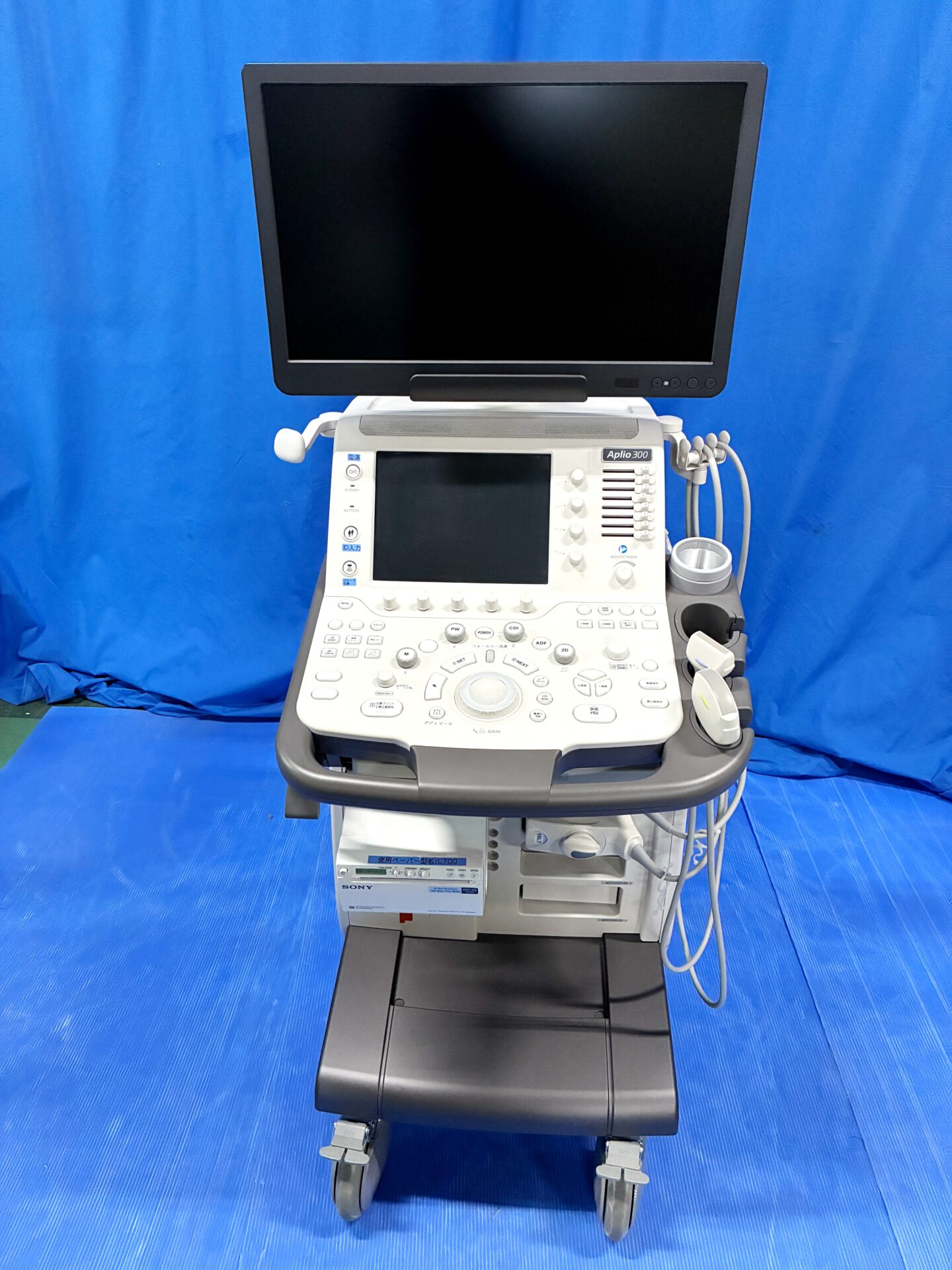 | 構成 | キヤノン 超音波診断装置 Aplio300 platinum <構成> 超音波診断装置 TUS-A300/FJ DICOMキット USDI-A500A ゲルウォーマ UZGW-007A Differential THIキット USDT-A300A SMIキット USMI-A300A PrisisionImajingキット USPI-A300A Aplipure Plusキット USPP-A300A コンベックスプローブ PVT-375BT/FD リニアプローブ PLT-1204BT 白黒プリンタ UP-D898MD |